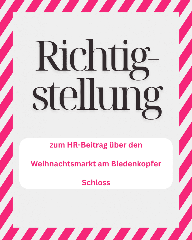 Richtigstellung zum HR-Beitrag am Donnerstag über den Weihnachtsmarkt am Biedenkopfer Schloss