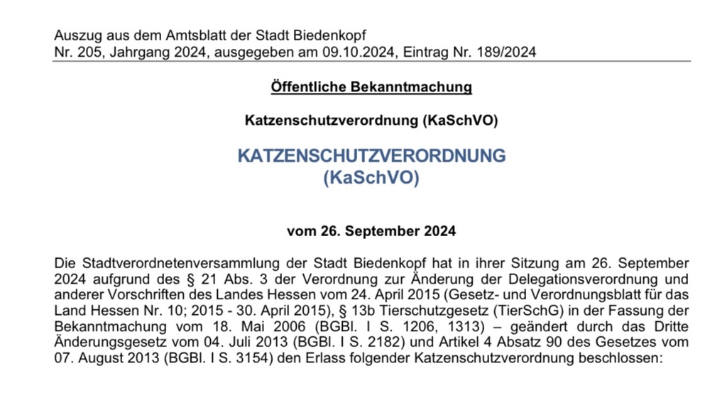 Katzenschutzverordnung für Biedenkopf