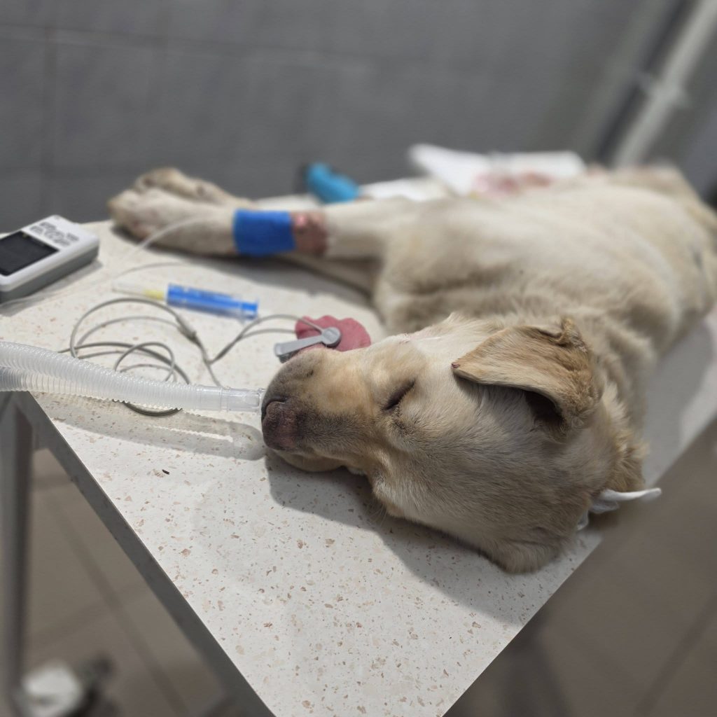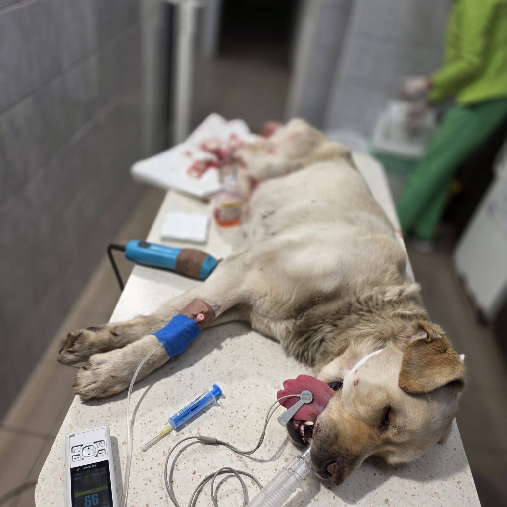 Vor einigen ist unsere ungarische Tierschutzkollegin Betty schließlich zu ihm gefahren und hat ihn ins Krankenhaus gebracht, wo er sofort behandelt wurde. Einer der Stümpfe ist sogar auf dem Parkplatz der Klinik abgefallen, als er aus dem Auto gehoben wurde.