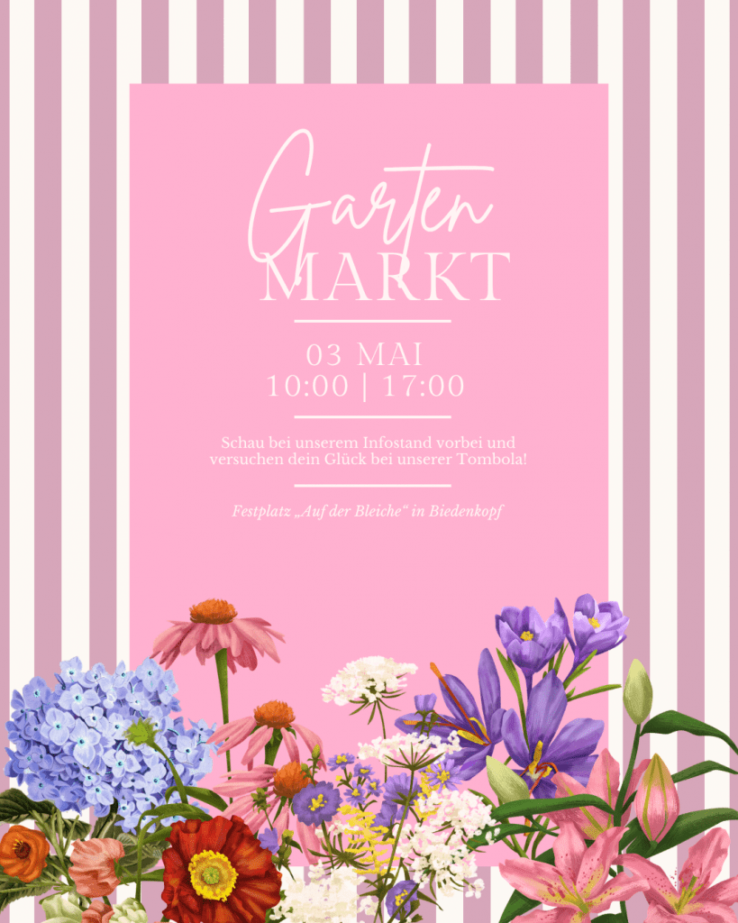 Wir freuen uns auf euren Besuch, eure Unterstützung und einen schönen Tag mit euch auf dem Gartenmarkt!
