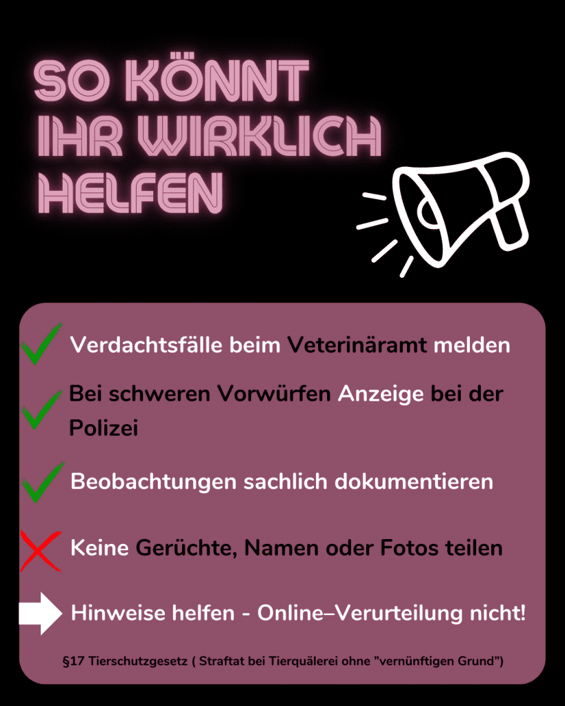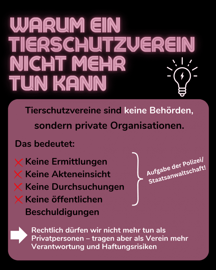 Gleichzeitig möchten wir als Tierschutzverein einordnen: Wir sind keine Ermittlungsbehörde.