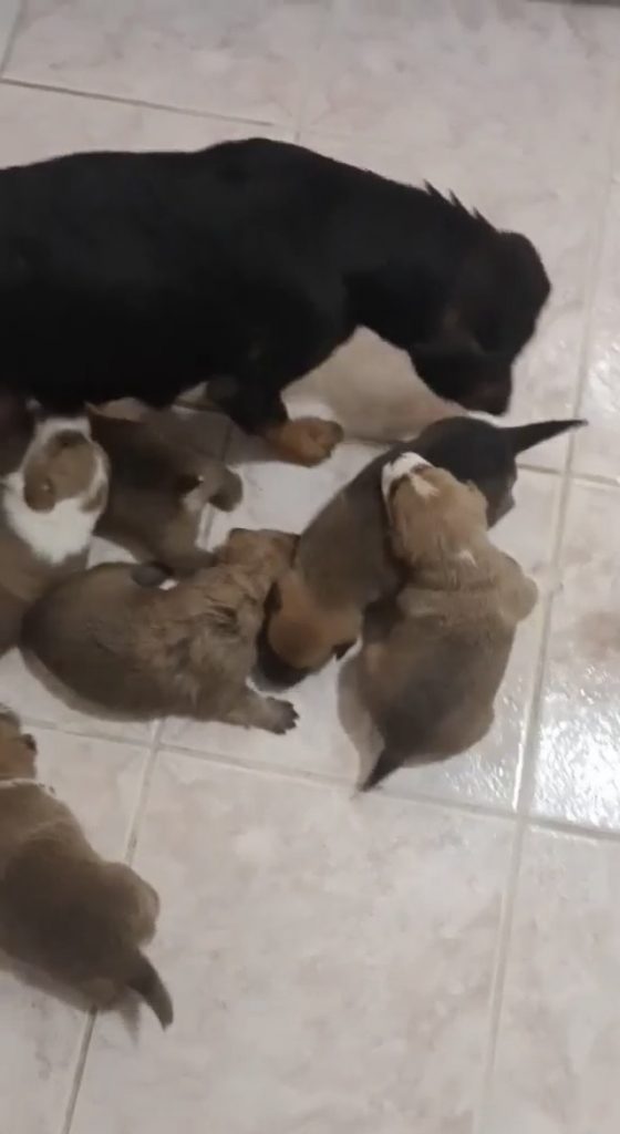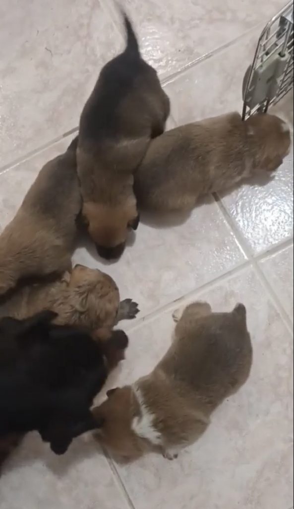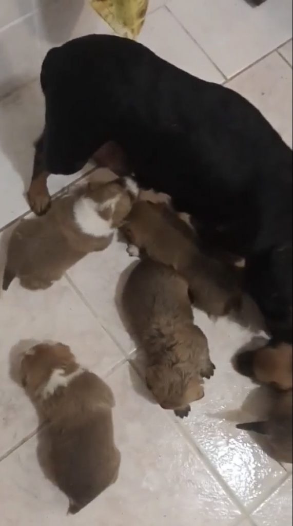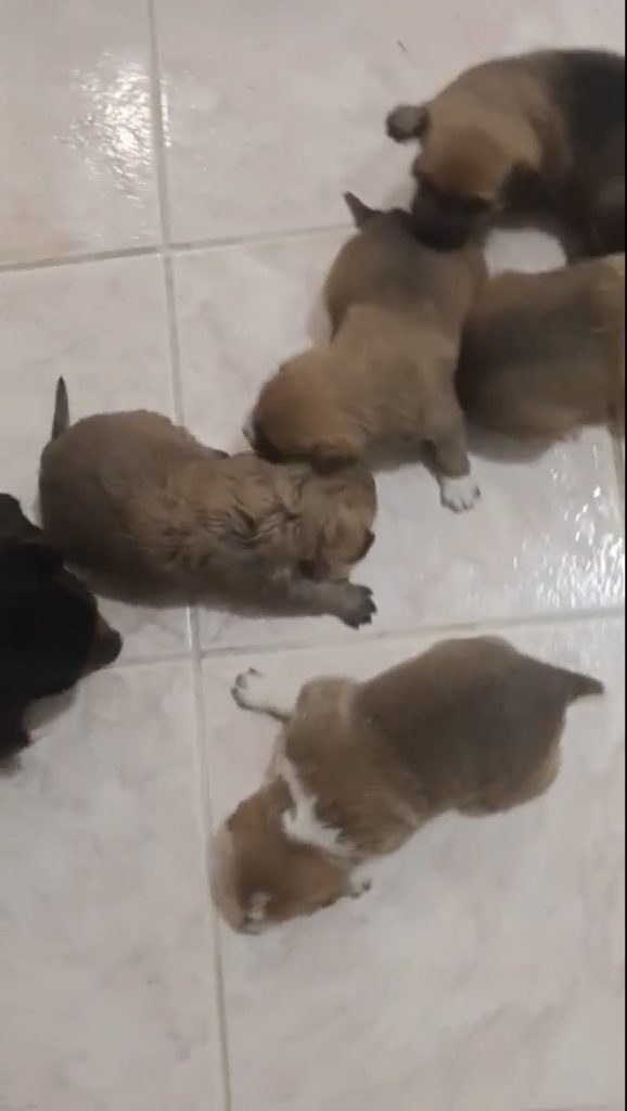 Panni wurde zufällig in einem alten, verlassenen Schweinestall gefunden – allein mit ihren neugeborenen Welpen. Ohne Schutz und Versorgung hatte sie dort ihre Babys zur Welt gebracht. Für die kleine Familie war das Überleben ungewiss.
