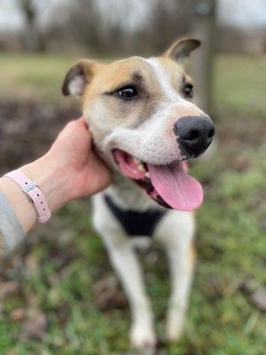 Tigi, ca. 1,5 Jahre alt und 50 cm Schulterhöhe, hat unter widrigen Umständen gelebt. Sein Lebensradius bestand aus einer 3 Meter Kette. Trotz dieser Haltung ist Tigi ein überaus netter Rüde, der jetzt nachholen möchte, was man ihm so lange verwehrt hat. Tigi möchte rennen, spielen, entdecken, Abenteuer erleben… alles auf einmal und noch so vieles mehr und das im Kalopp. So sehr genießt der mittelgroße Rüde die Freiheit.